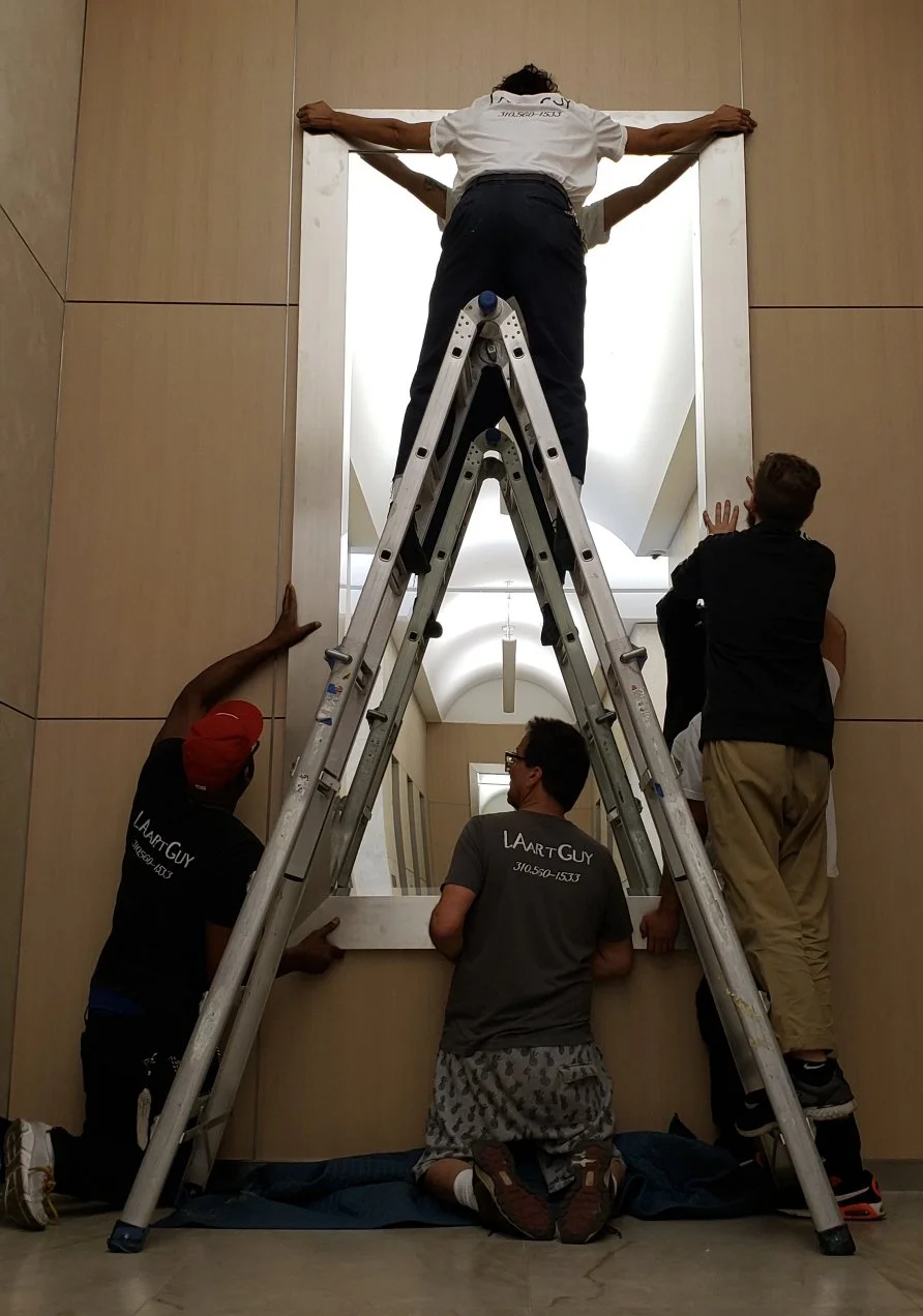 We have the experience to work in high-rise office buildings, corporate offices, galleries, museums, banks, and convention centers (art show productions). Whether your building has concrete or brick walls or metal studs, we know how to get the art on the wall safely and securely.